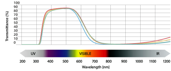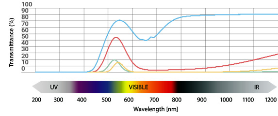 We provide color glass filters for a wide range of fields such as cameras, optical instruments, physics and chemistry, educational materials, industrial and medical, with spectral characteristics and size according to your requirements.