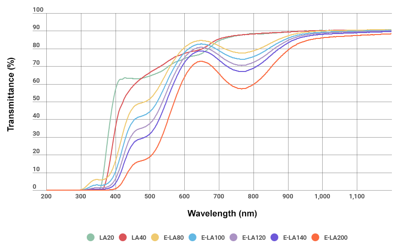 掲載写真硝種品:上から LA20 / LA140 / LB20 / LB165