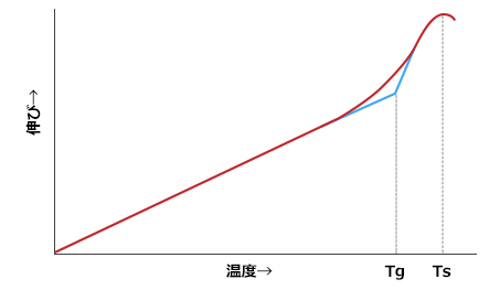 | Ts(屈伏点) | 図に示すように、熱膨張曲線の伸びが停止する温度のことです。 ![]() | ||||||||||||||