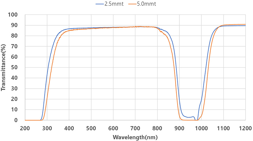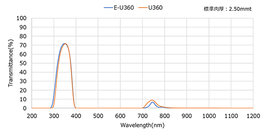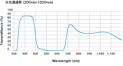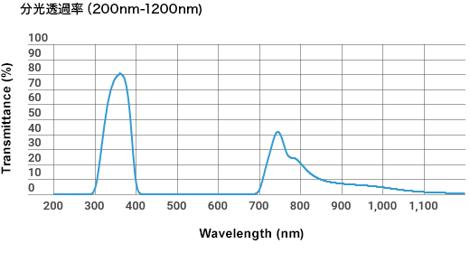 - 紫外域を透過し、可視域を吸収するバンドパスフィルターです。