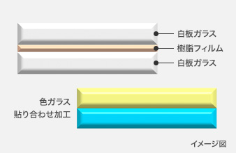 異なる色ガラスフィルターの波長を重ねて独特な特性を持たせたるため、色ガラス同士の貼り合わせ接着加工品も販売いたします。また色ガラスだけではなく、樹脂フィルムや偏光フィルムなどを2枚の白板ガラスに挟み接着し、色ガラスでは生み出せない特性をもつ特殊フィルターのご提案もいたします。