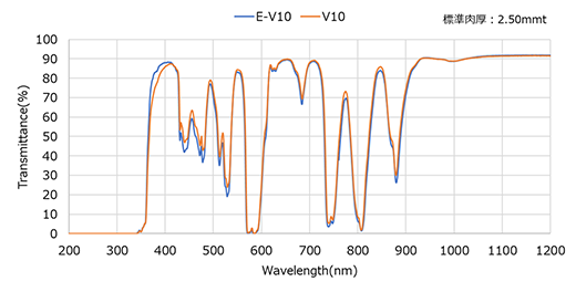 - 可視光域の透過性と900-1000nm波長範囲への強い吸収を両立したガラスです。