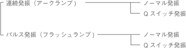 例えば、A/O Qスイッチ(後述)を用い、数十kHzの繰り返しで、パルス的発振出力を得る場合も連続波レーザーと呼びます。